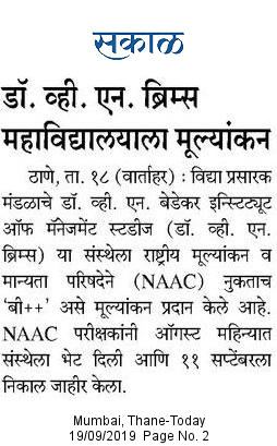 डॉ. व्ही.एन.ब्रीम्स महाविद्यालयाला मूल्यांकन