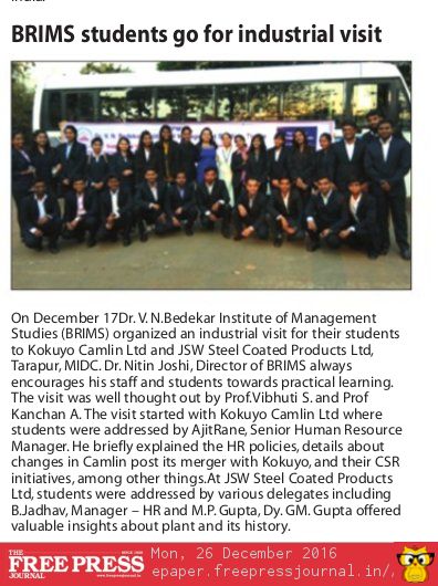 Industrial Visit at Tarapur News