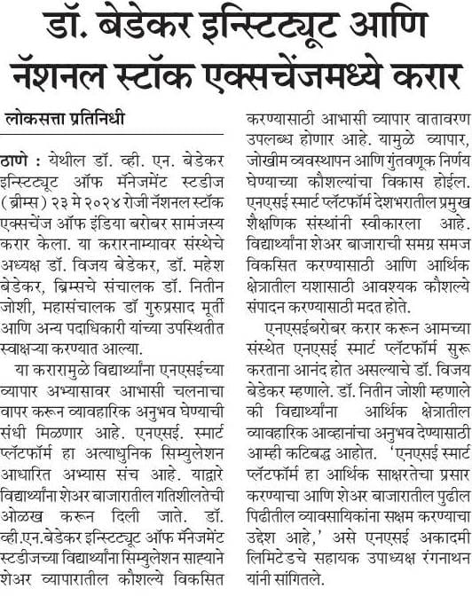डॉ. बेडेकर इन्स्टिटयूट आणि नॅशनल स्टॉक एक्सचेंज मध्ये करार